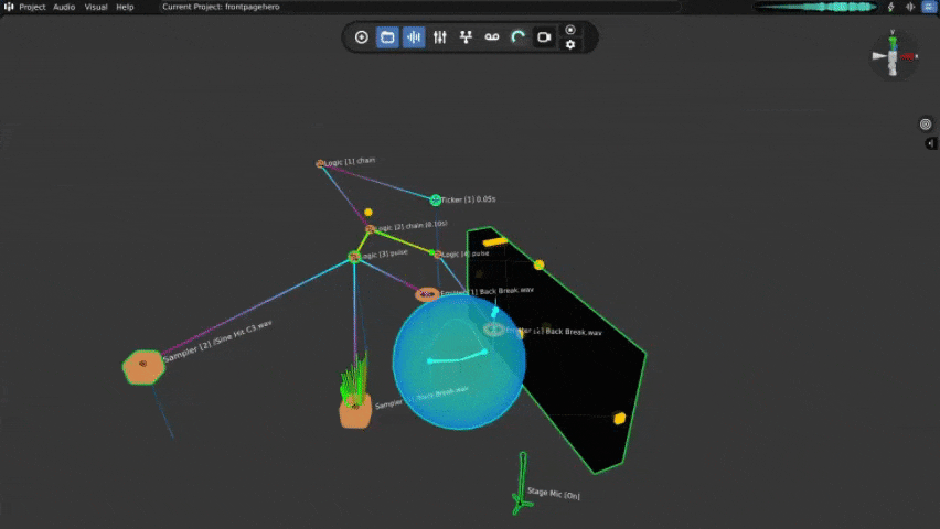 - Experiment with your Acoustics - Add sound walls to your project and place them near your samplers, and you will see natural reflections of the sounds. If you want to hear 360° sound in your headphones, just turn on the HRTF binauralizer.